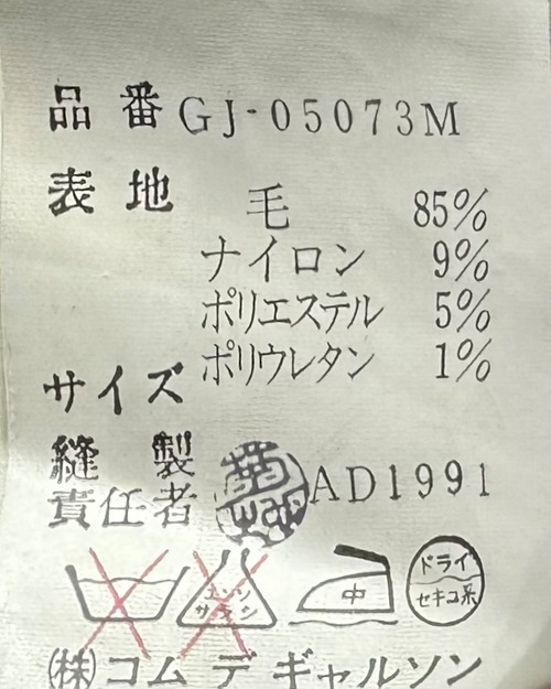 素材 MATERIAL:85% WOOL,9% NYLON,5% POLYESTER,1% POLYETHYLENE