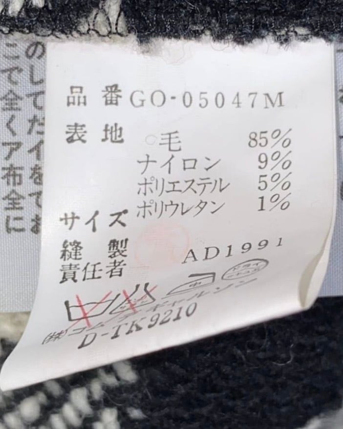 素材 MATERIAL:85% WOOL,9% NYLON,5% POLYESTER,1% POLYETHYLENE