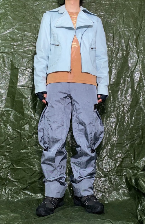 湾曲したジッパーに広めの襟や丸みを帯びた各パーツはオリジナルを踏襲していますが、アイスブルーの表地のおかげでタイムレスなデザインに昇華されています。